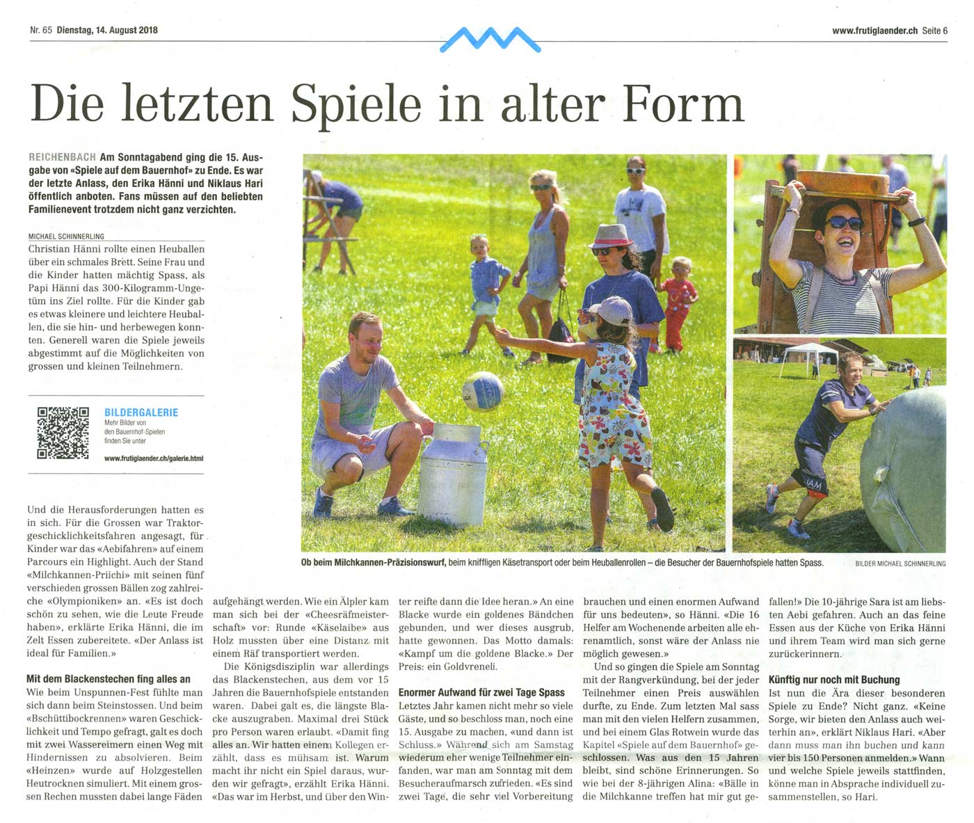 Im 2018 fanden die letzten regelmässigen Spiele auf dem Bauernhof statt (Pressebericht).